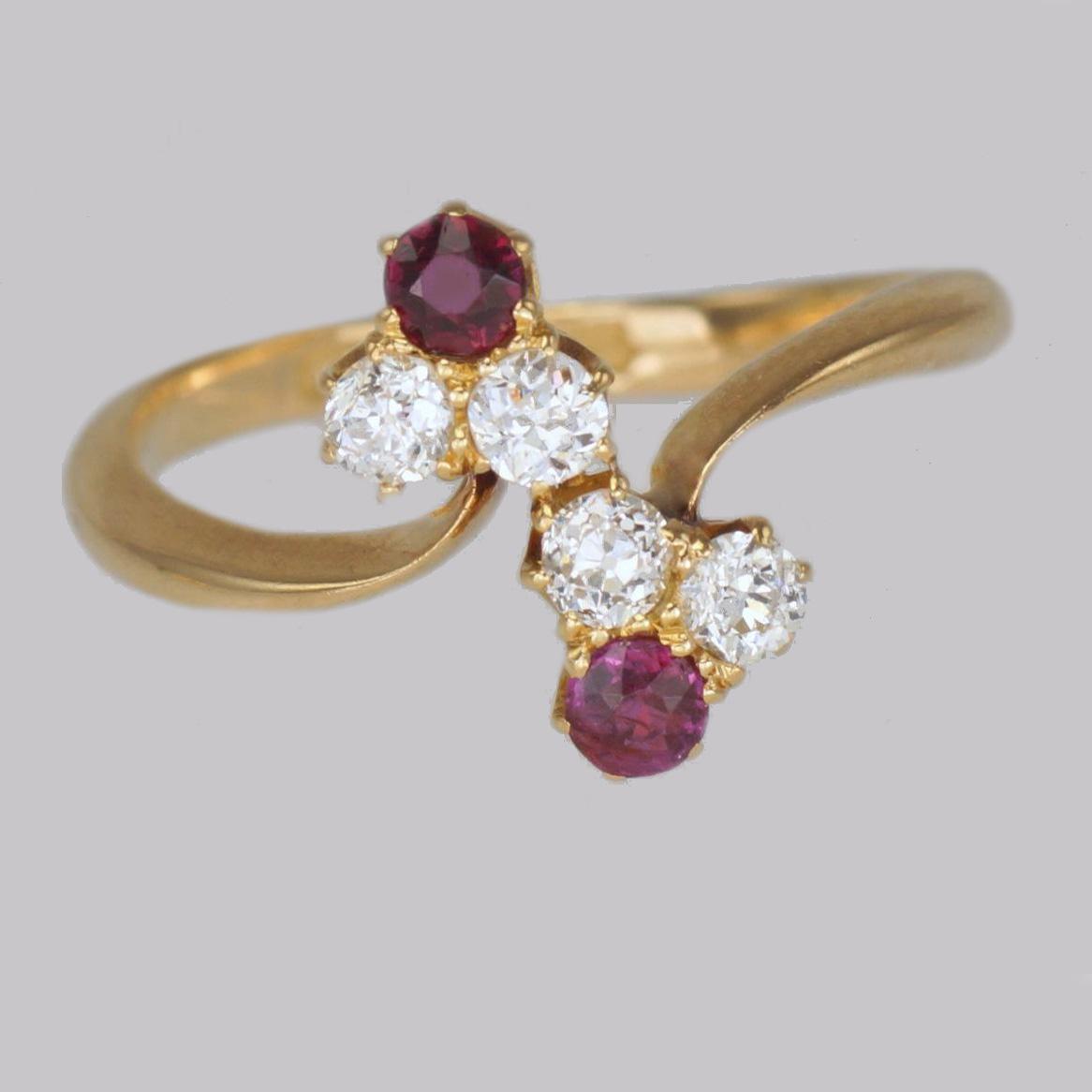 Antique Ruby & Old Cut Diamond Ring Victorian 18ct Gold Dress Ring c.1900
