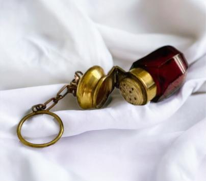 Antique Ruby Red Glass Acorn Form Chatelaine Vinaigrette Perfume Scent Bottle c.1880 (1 of 10)