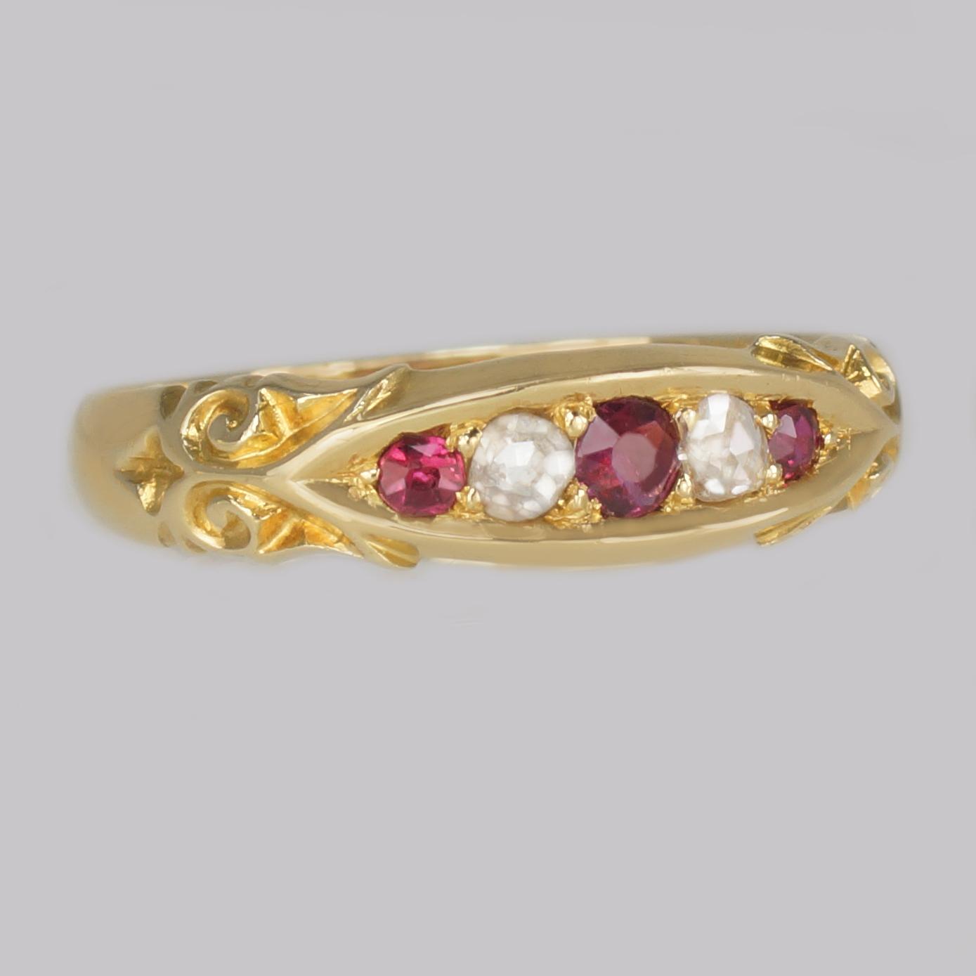 Antique Ruby & Rose Cut Diamond Ring 15ct Gold Victorian Five Stone Ornate Ring