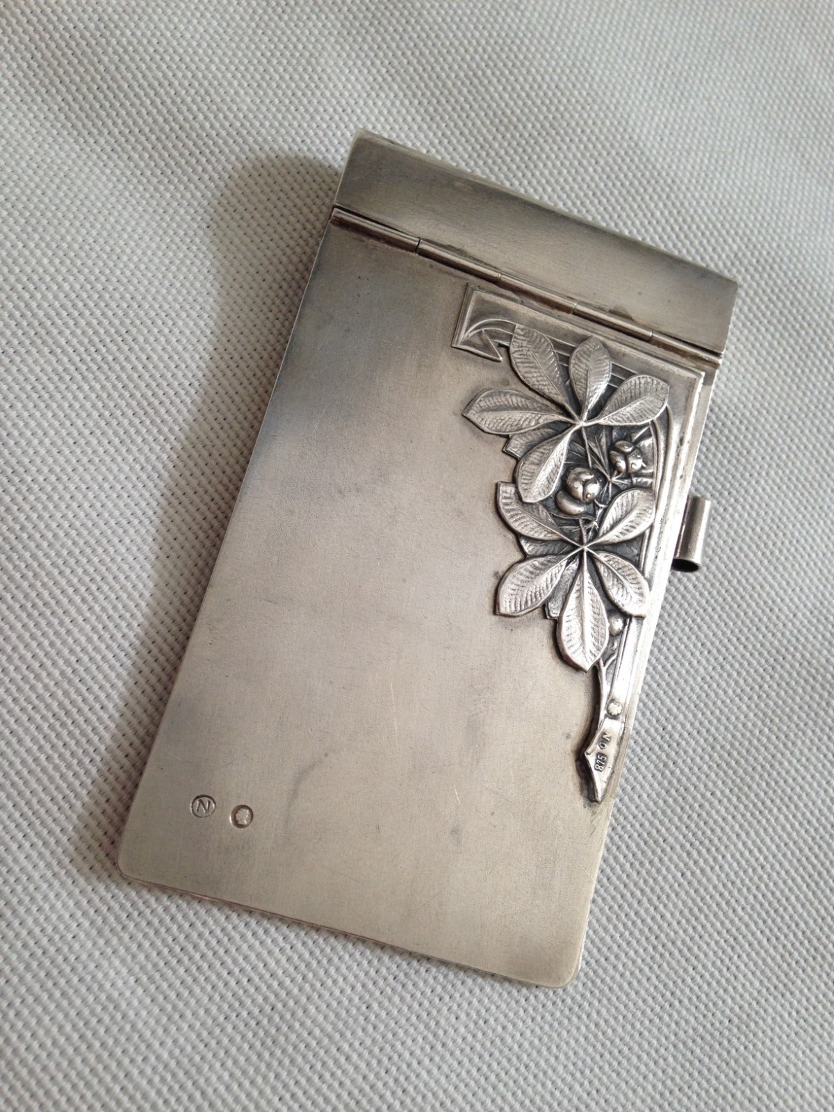 Antique Russian Sterling Silver Art Deco Note Pad Holder Cover Engraved, 1920s