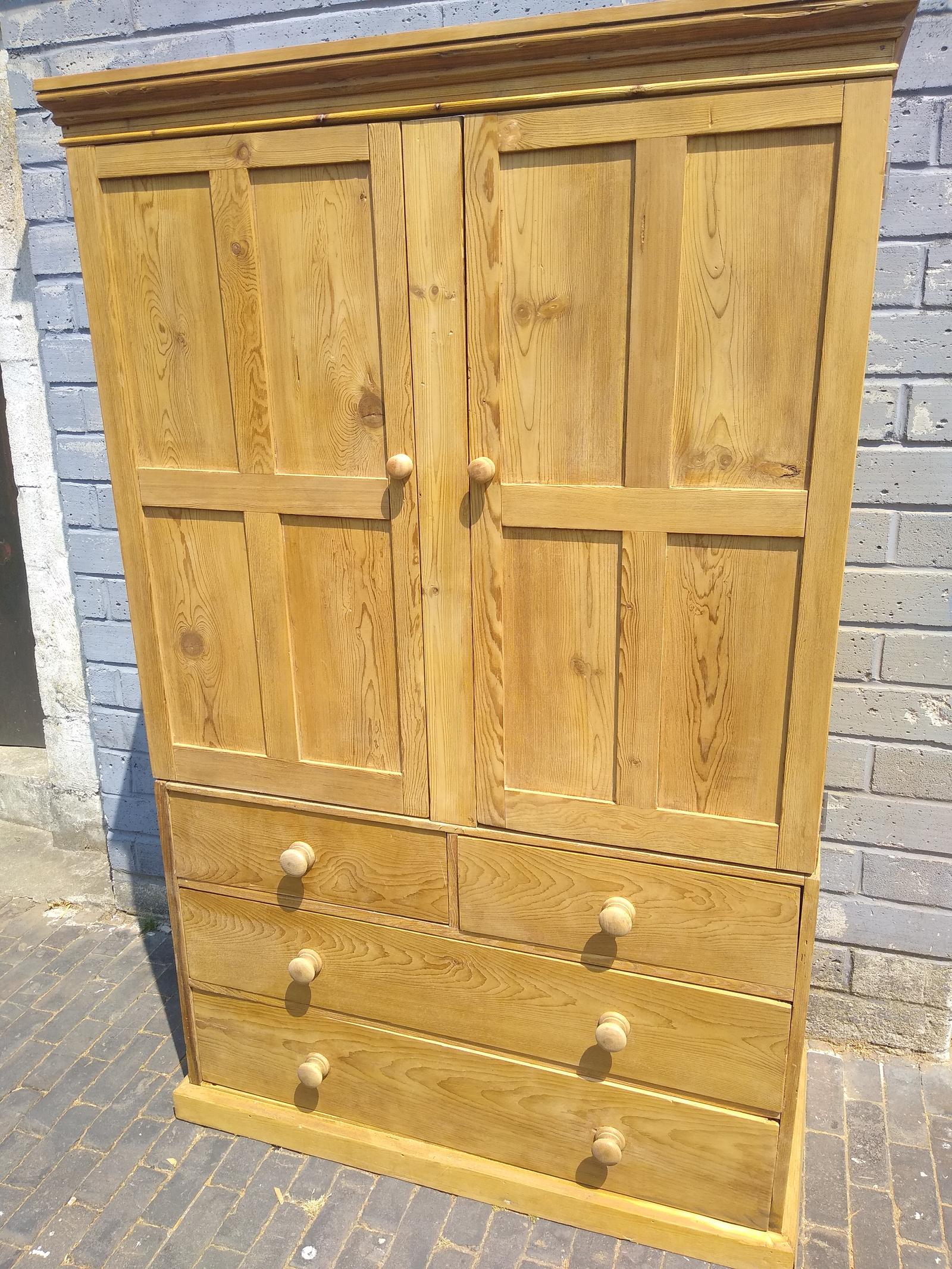 Antique Rustic Pine Linen Press Wardrobe Cupboard