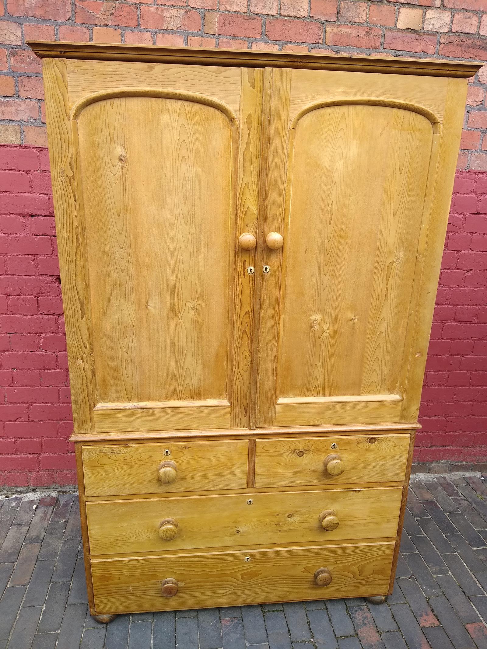 Antique Rustic Pine Linen Press Wardrobe Cupboard