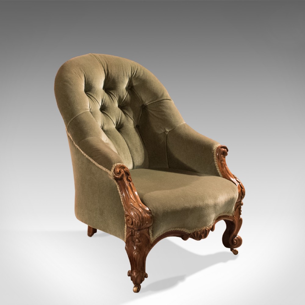 Antique Salon Chair, Early Victorian, Button Back, Walnut, English, c.1840