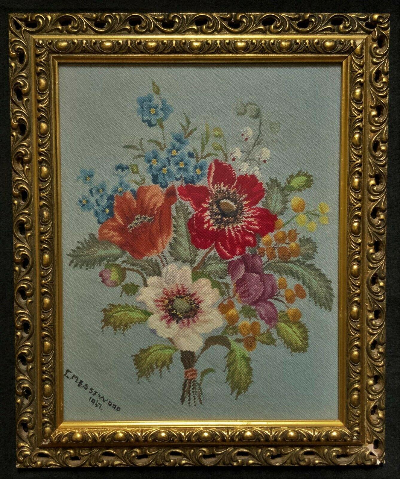 Antique Sampler - Floral Embroidery 1947 C.M.Eastwood