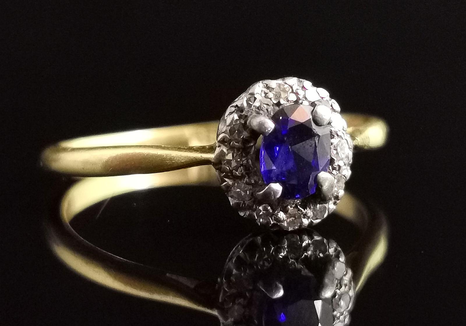 Antique Sapphire and Diamond Cluster Ring, 18ct Yellow Gold
