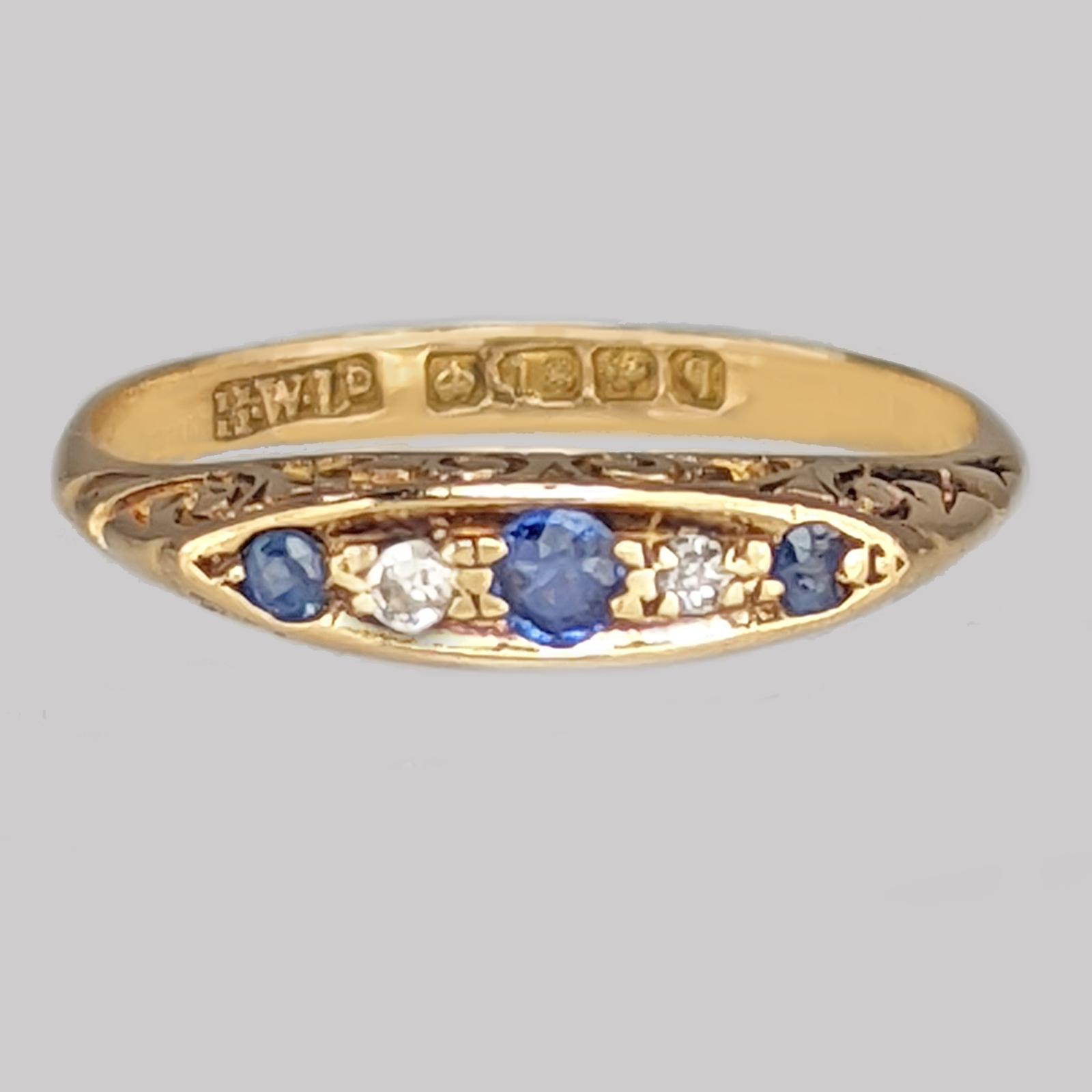 Antique Sapphire & Diamond Ring Henry Wilkinson 18ct Gold Ring Birmingham 1915