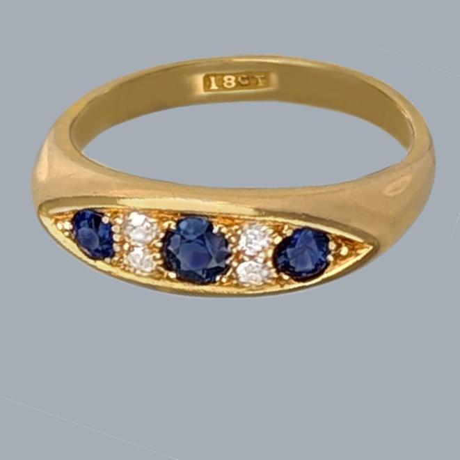 Antique Sapphire & Diamond Ring Victorian 18ct Gold Bateau Ring 6.8 Grams