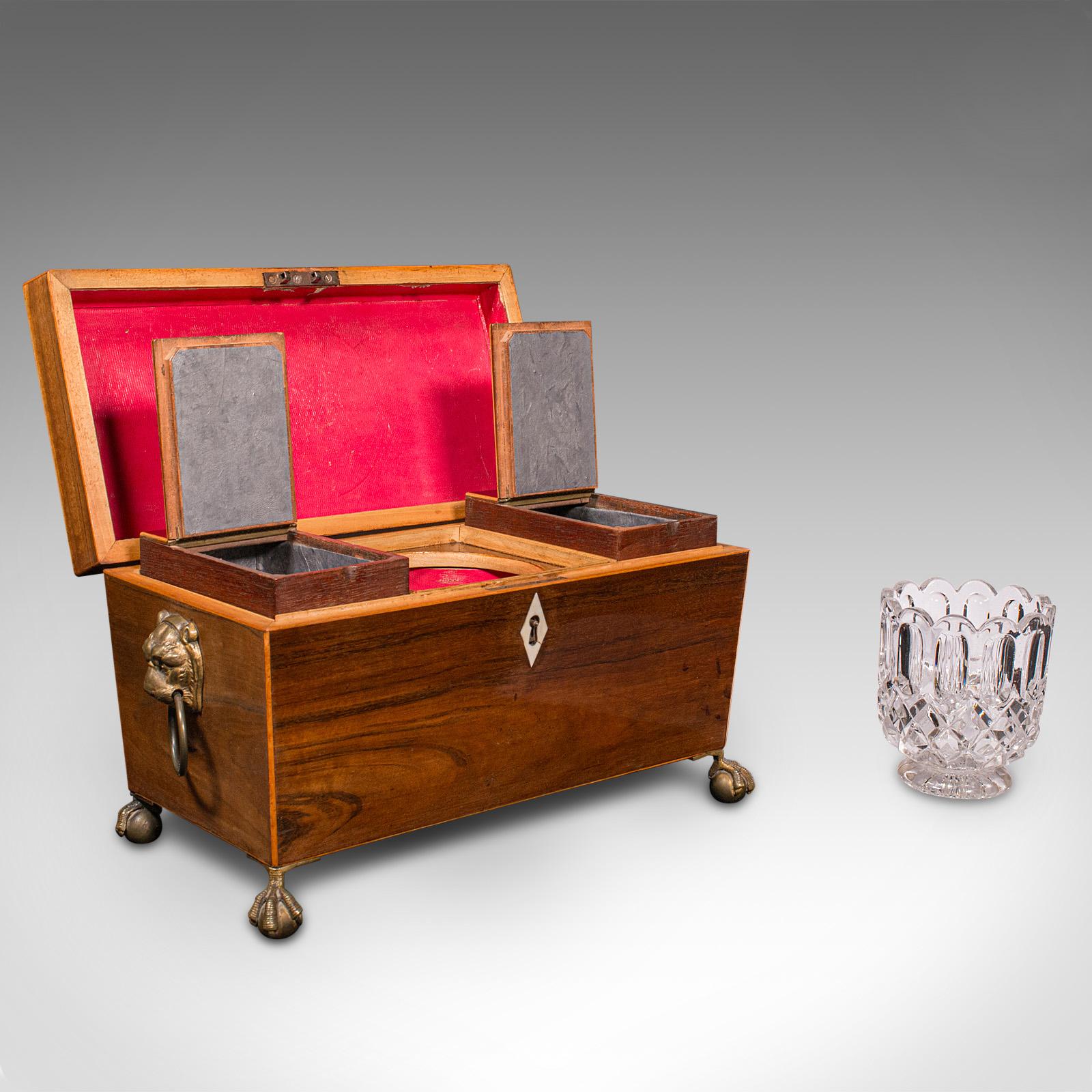 Antique Sarcophagus Tea Caddy, English, Box, Glass Mixer, Regency c.1820