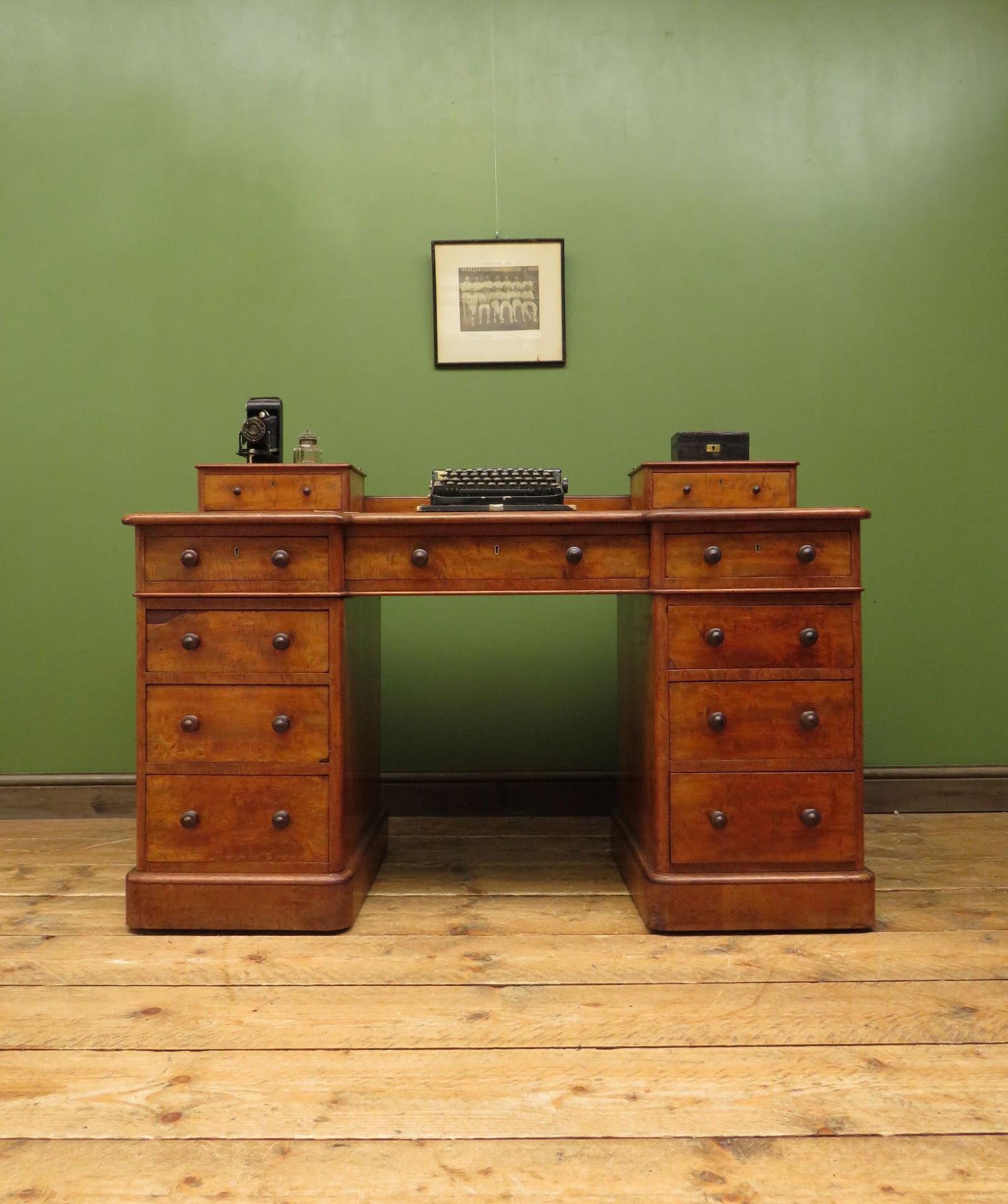 Antique Satin Birch Pedestal Desk by Heal & Sons