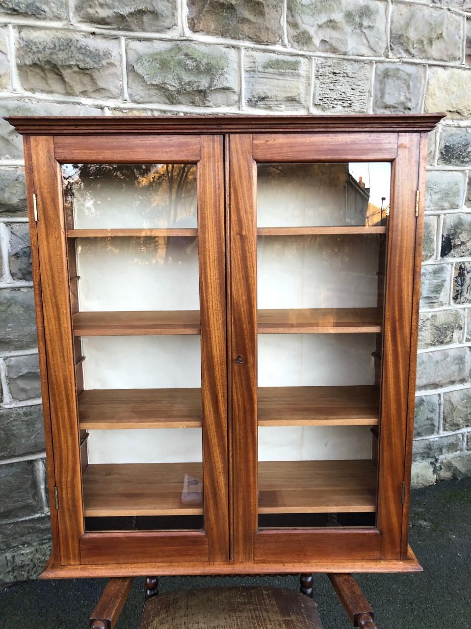 Antique Satin Walnut Wall Mounted Display Cabinet