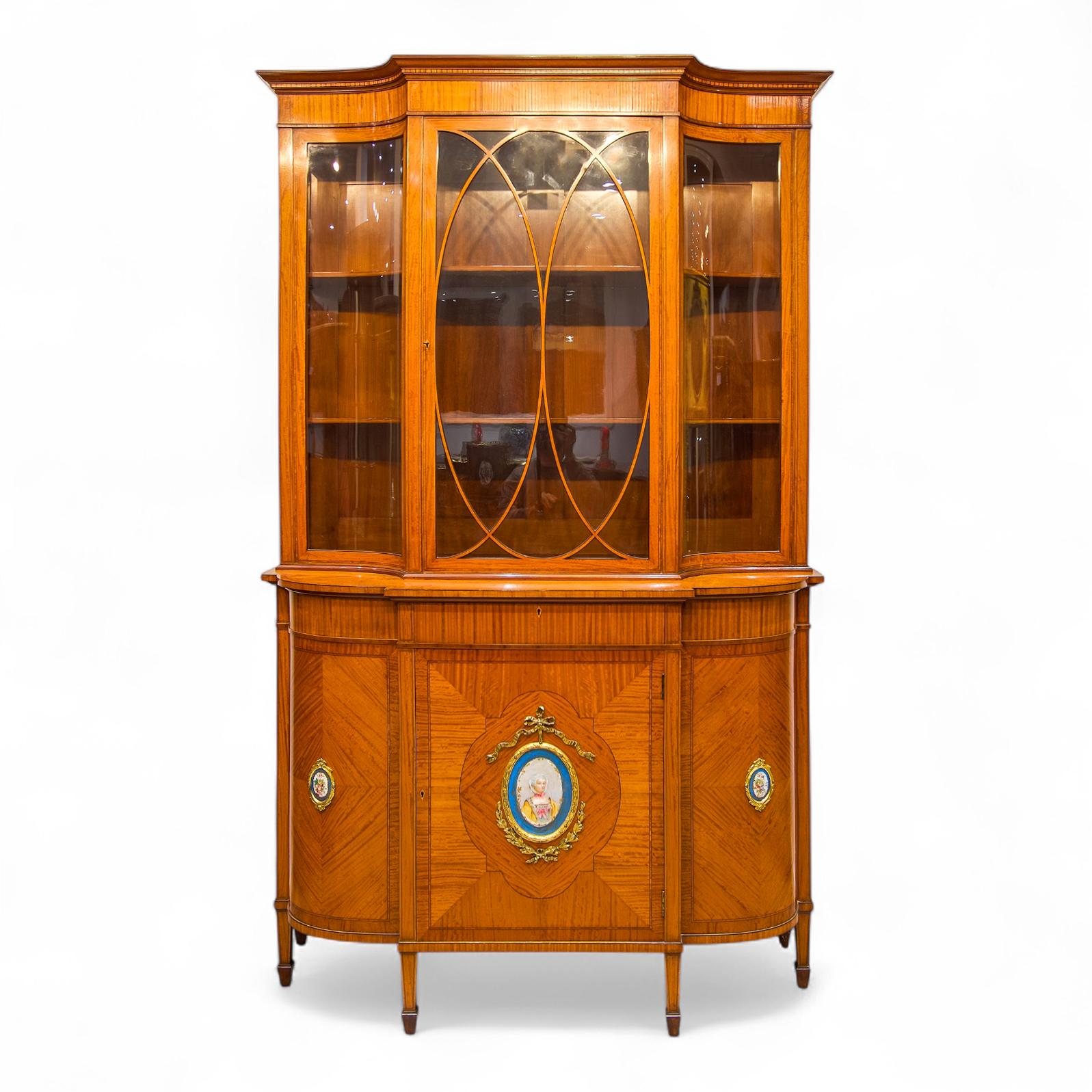 Antique Satinwood Display Cabinet With Porcelain Plaques