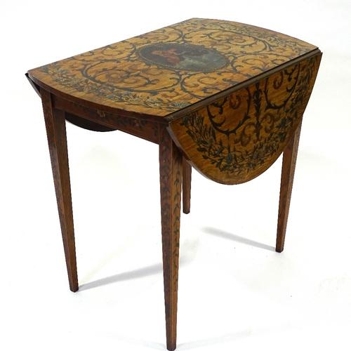 Antique Satinwood Oval Pembroke Table with Painted Top