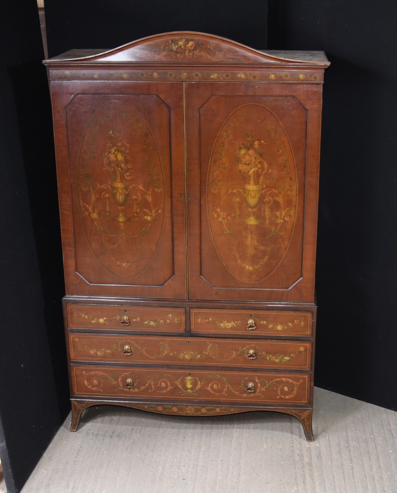 Antique Satinwood Painted Linen Press Cabinet Chest c.1820