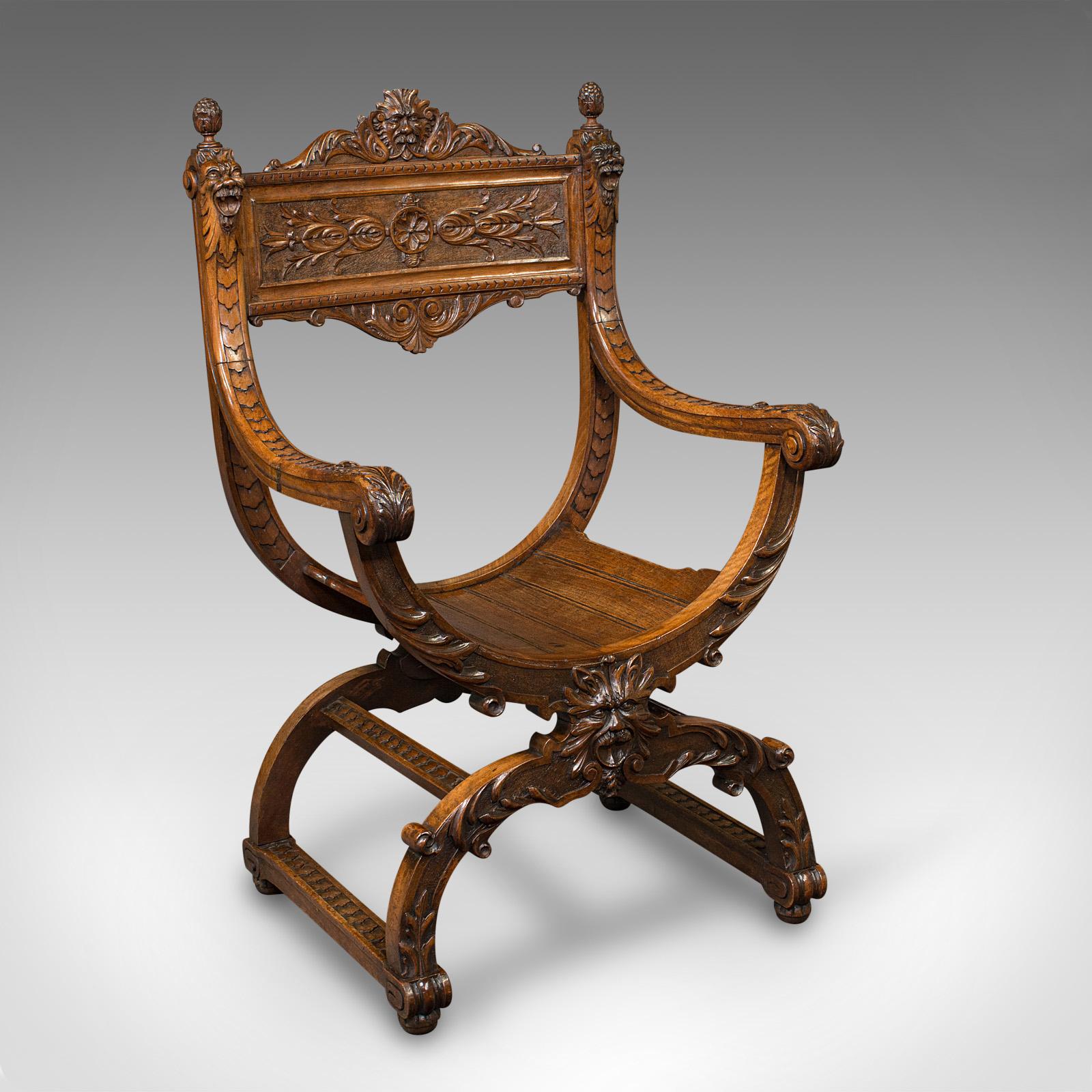 Antique Savonarola Armchair, English, Gothic Revival, James Shoolbred, Victorian (1 of 12)