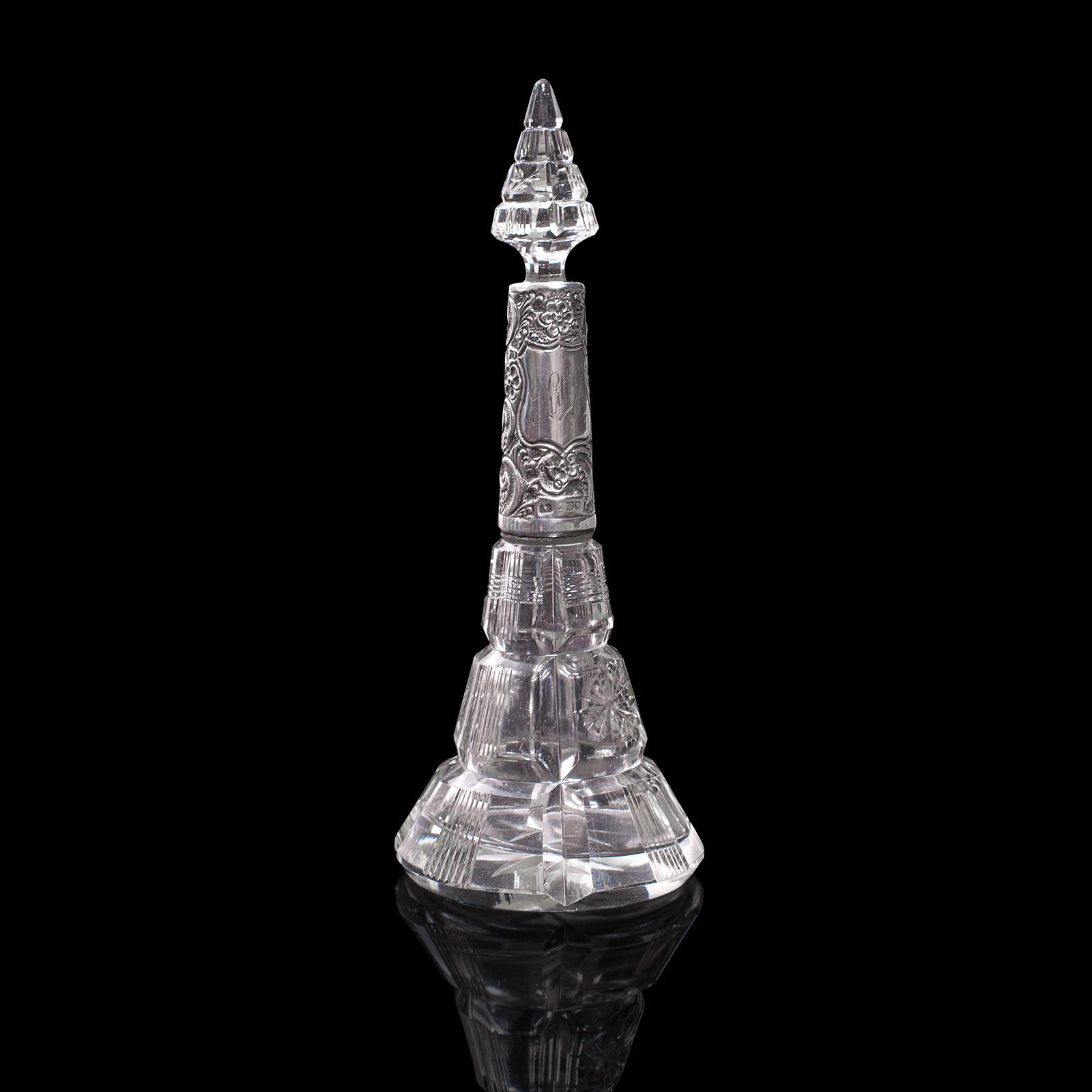 Antique Scent Bottle, English, Glass, Silver, Perfume, Hallmarked, London, 1912 (1 of 12)