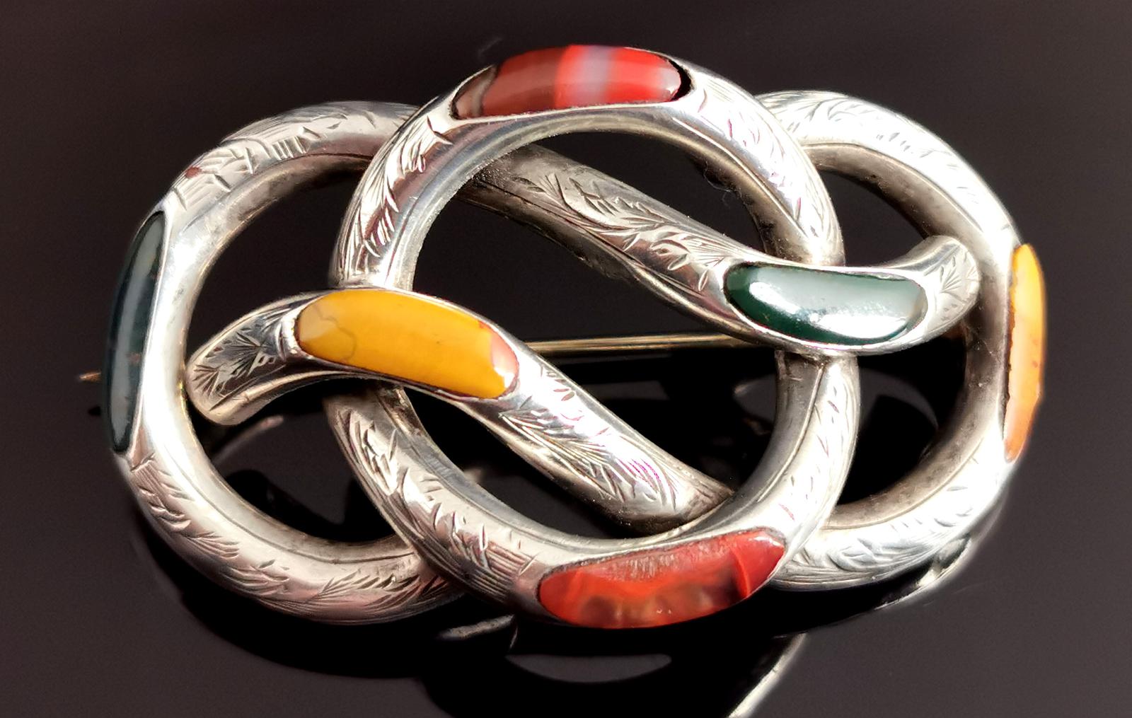 Antique Scottish Agate and Silver Knot Brooch, Victorian