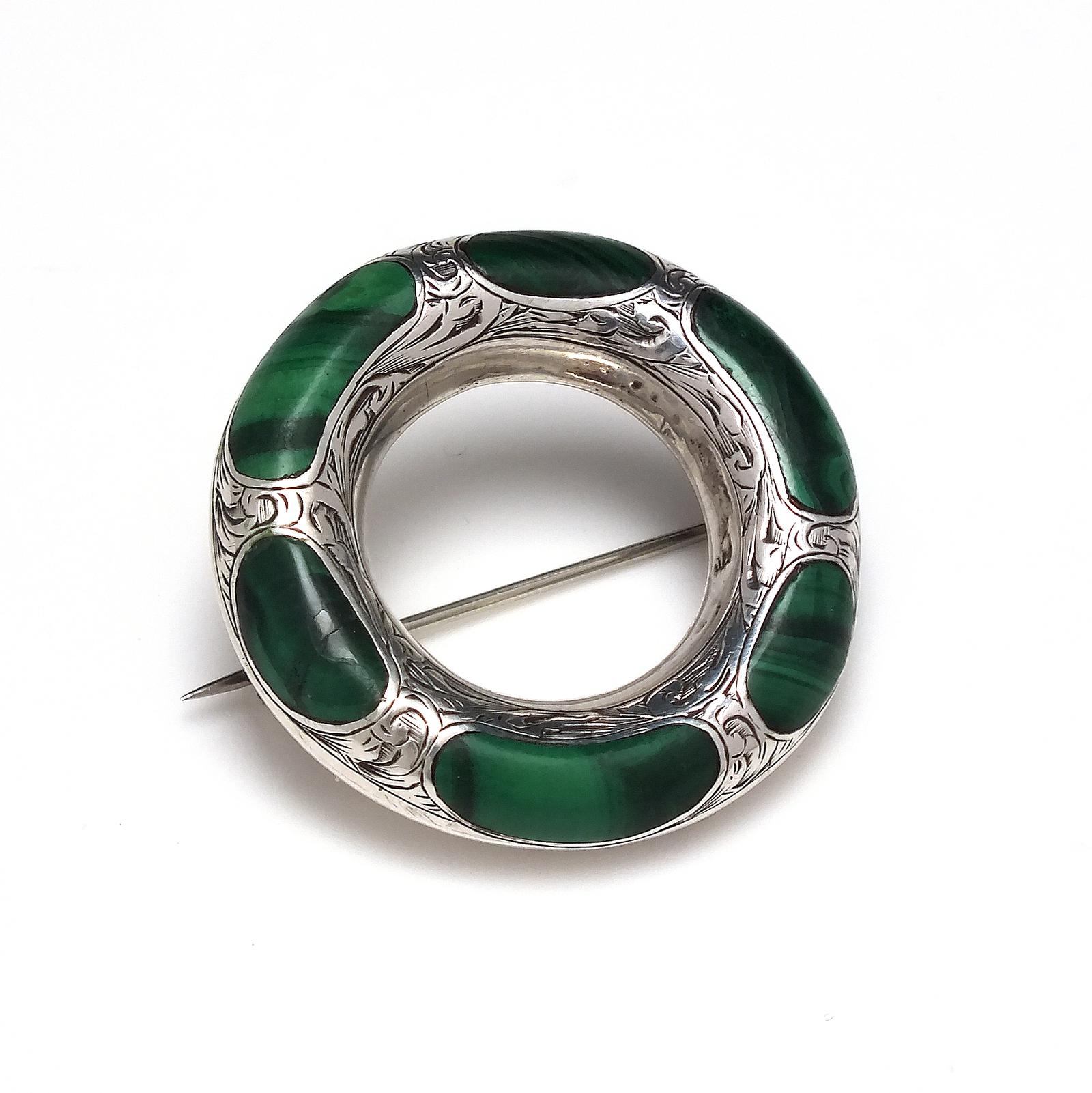 Antique Scottish Celtic Shield Silver & Macalite Brooch c.1880