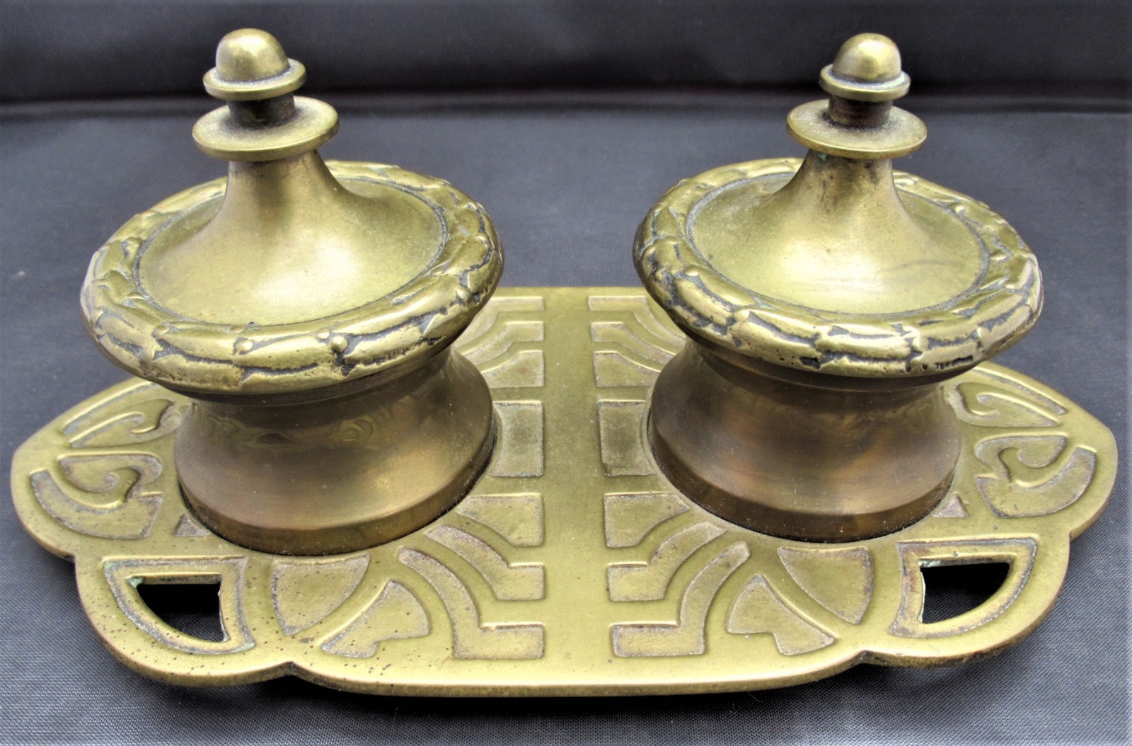 Antique Secessionist / Jugendstil Brass Inkwell c.1900, Possibly Austrian, Complete