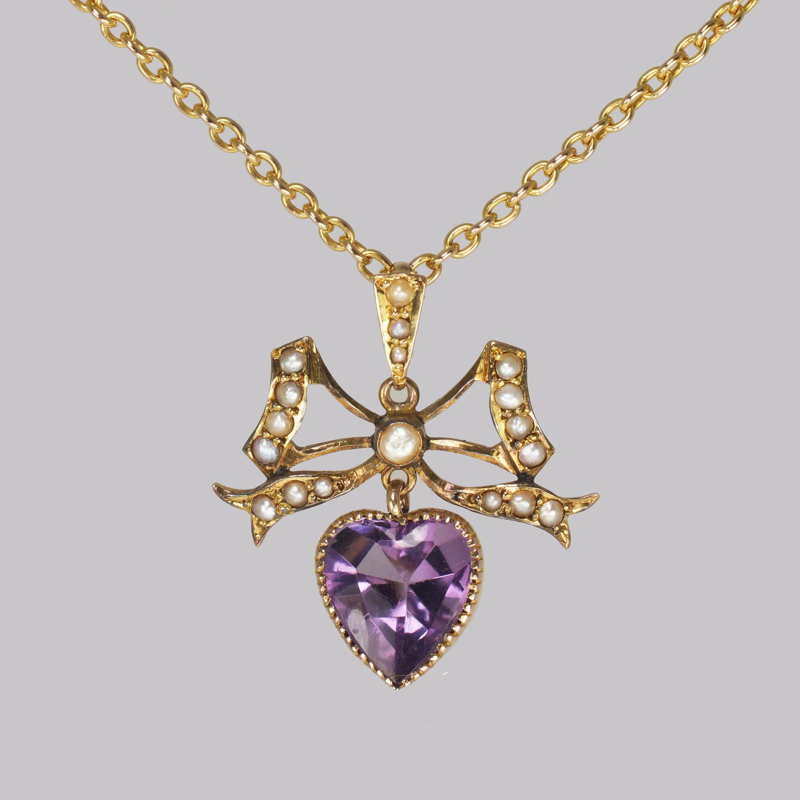 Antique Seed Pearl & Amethyst Pendant 15ct Gold Victorian / Edwardian Necklace