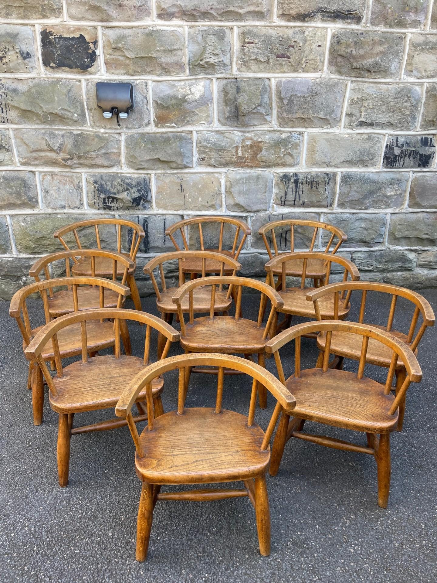 This Antique Set 12 Children's Elm & Beech Nursery Chairs is located in West Yorkshire, United Kingdom