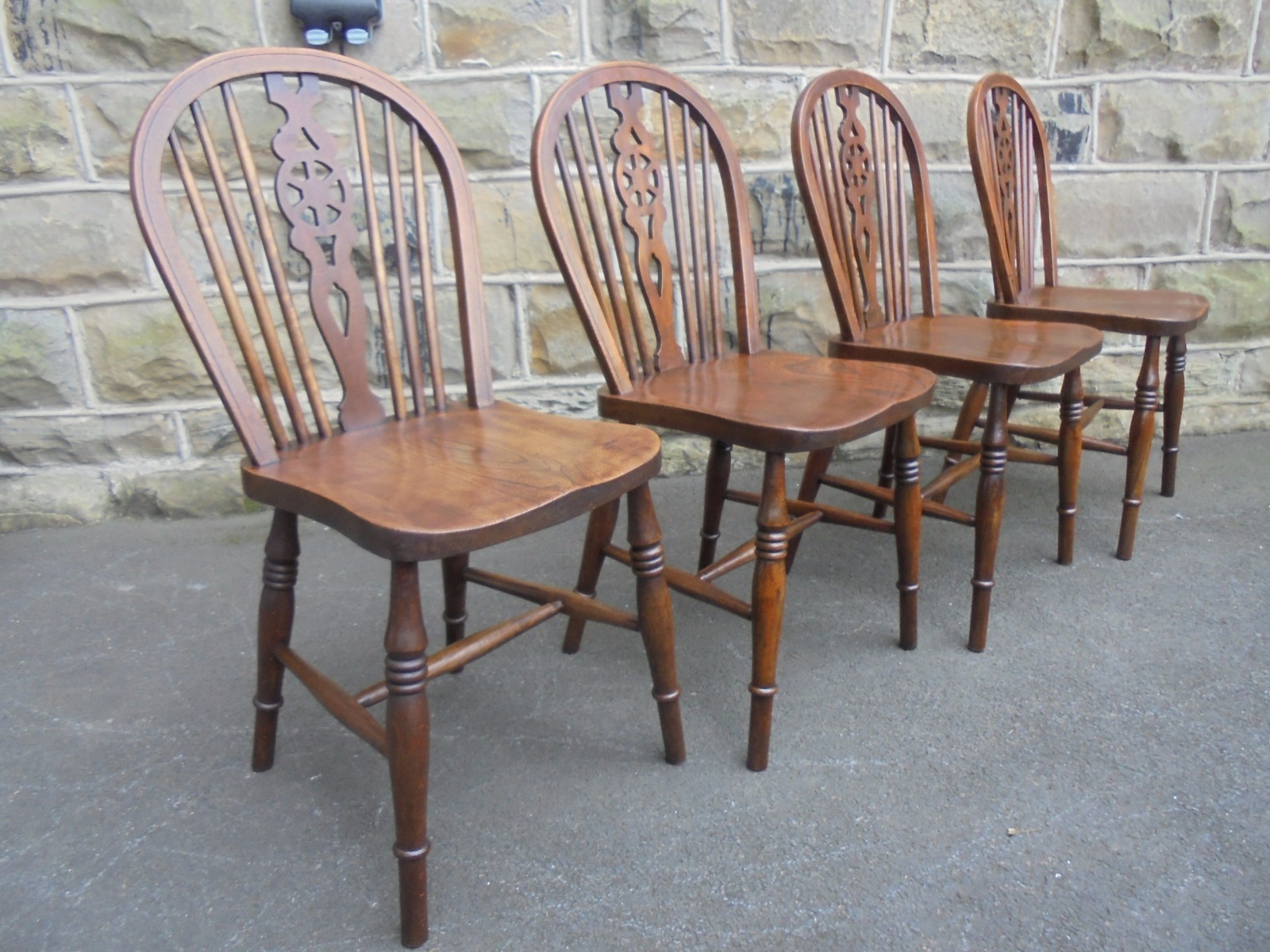 Antique Set 4 Ash & Elm Wheel Back Kitchen Chairs