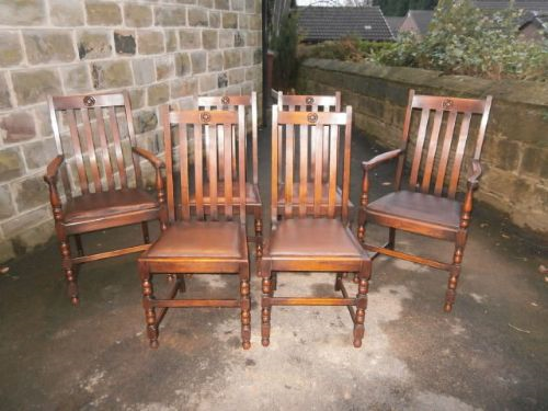 Antique Set 6 Oak Dining Chairs Kitchen Chairs c.1920