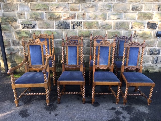 Antique Set 8 Barley Twist Oak Dining Chairs