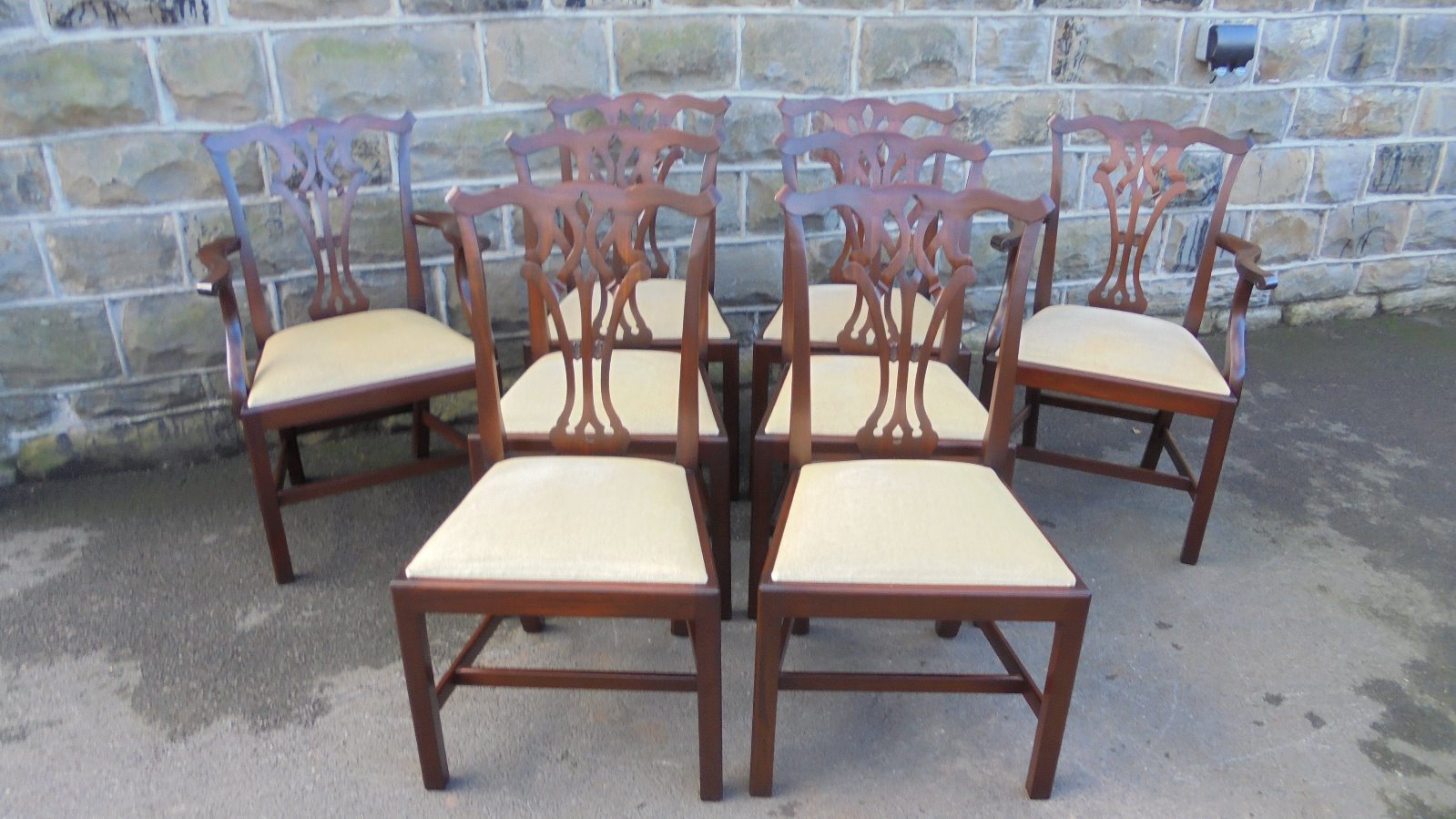 Antique Set 8 Chippendale Style Mahogany Dining Chairs