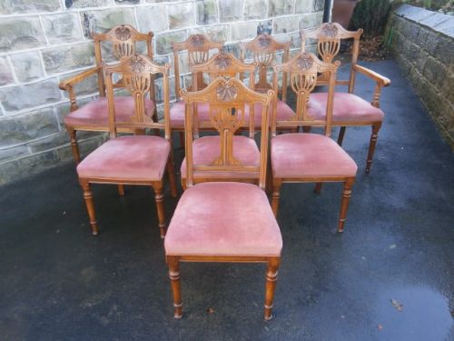 Antique Set 8 Oak Dining Chairs By Simpson & Son Halifax c.1890