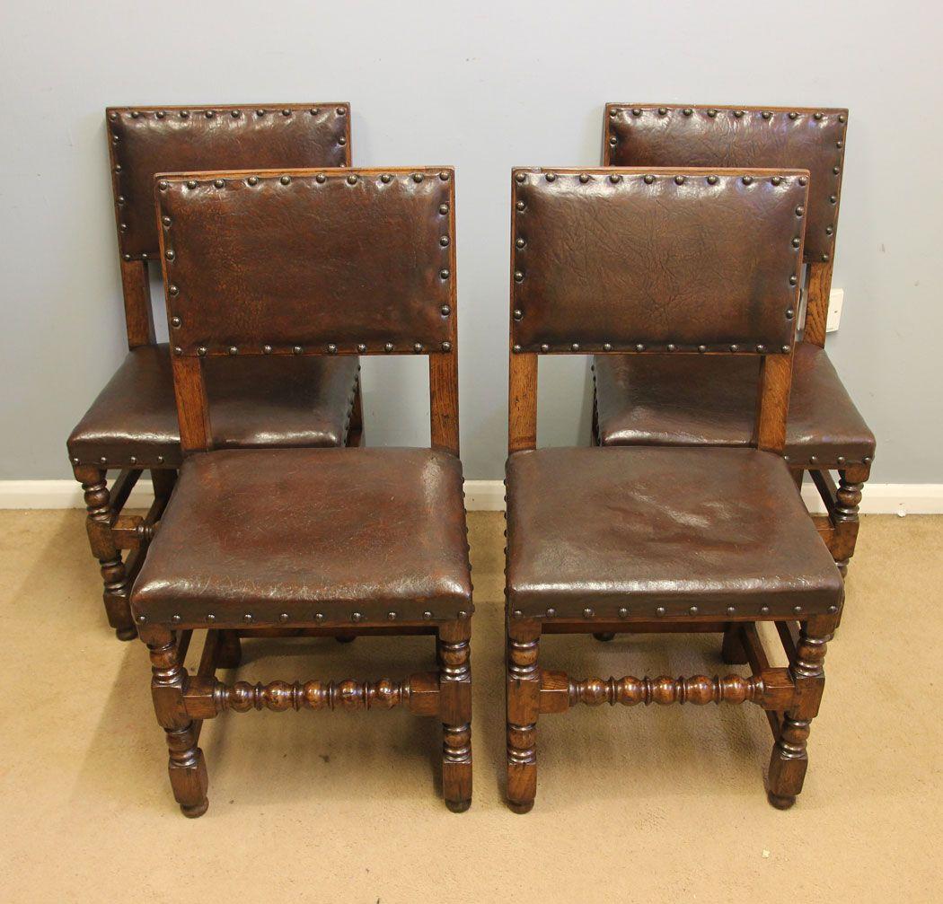 Antique Set Four Country Oak Dining Chairs (1 of 11)