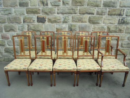 Antique Set of 10 Walnut Dining Chairs / Kitchen Chairs c.1910