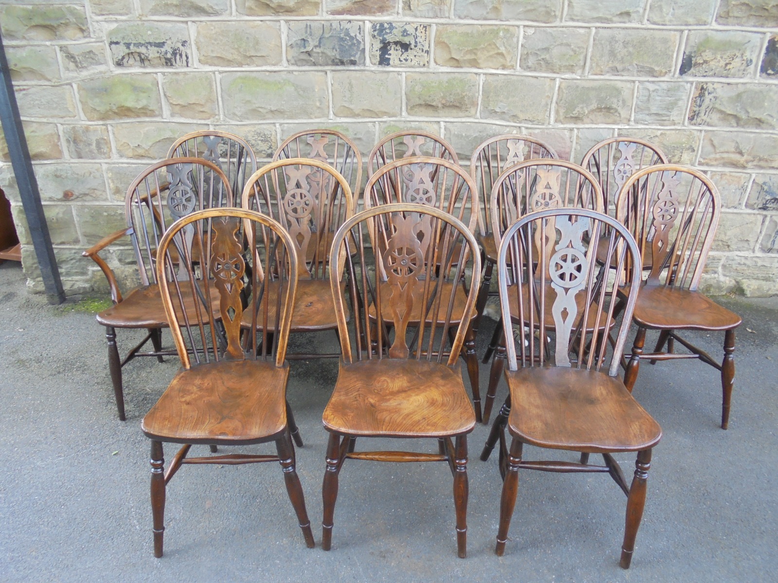 Antique Set of 13 Ash & Elm Kitchen Chairs