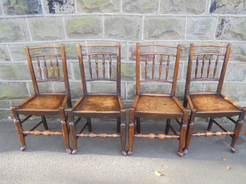 Antique Set of 4 Early Elm 7 Fruitwood Kitchen Chairs c.1800