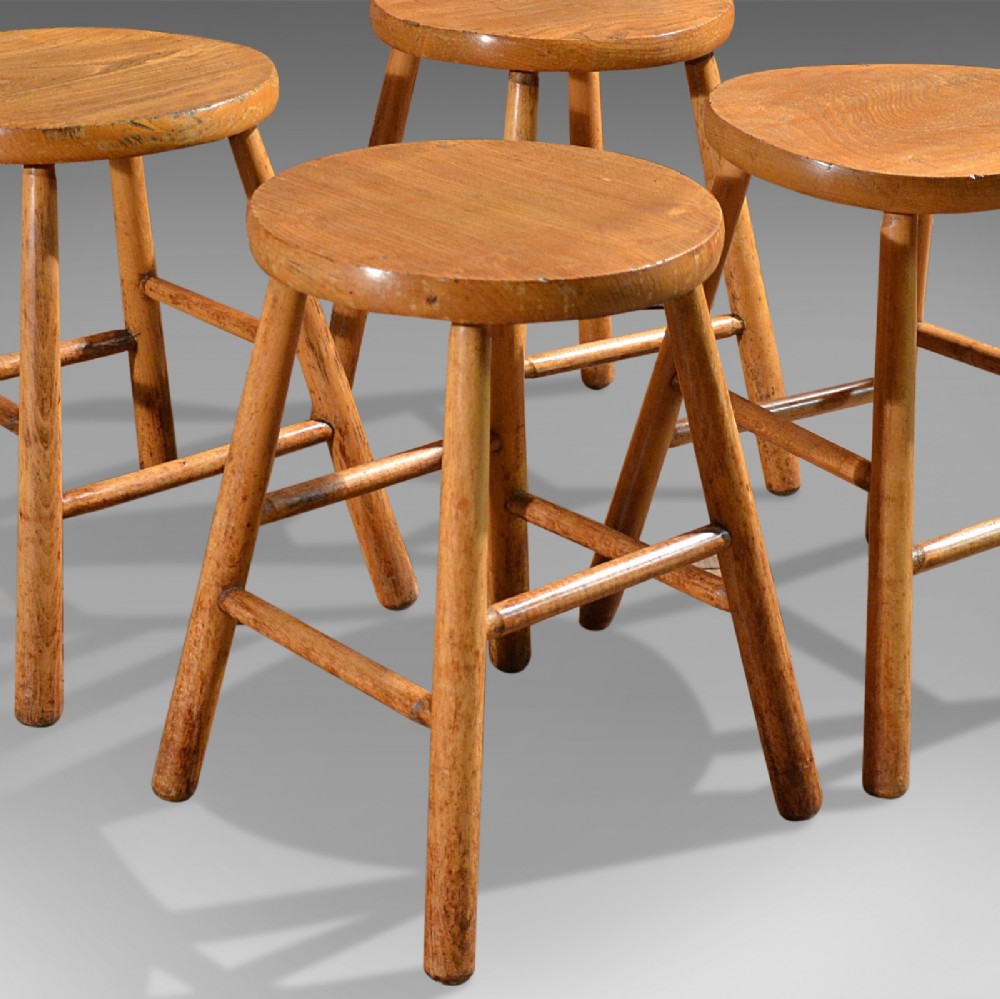 Antique Set of 4 French Country Kitchen Stools, Elm & Ash c.1900
