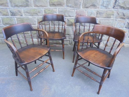 Antique Set of 4 Oak Captain Style Chairs c.1900