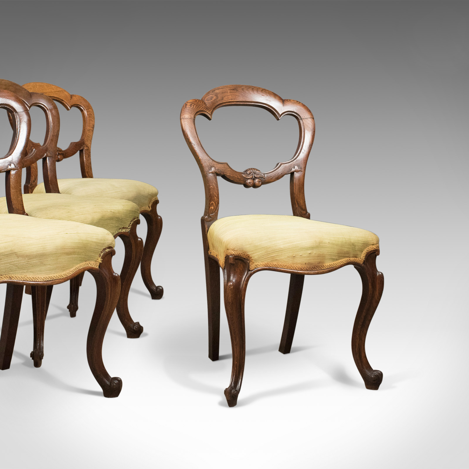 Antique Set of 4 Oak Dining Chairs, English, Victorian, Balloon Back c.1860