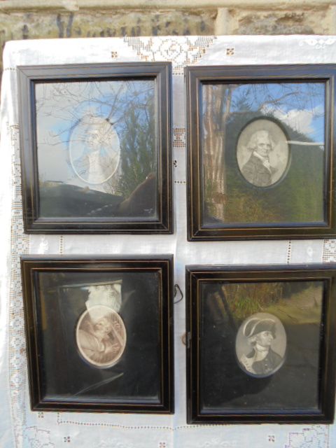 Antique Set of 4 Portrait Miniatures in Ebonised Frames
