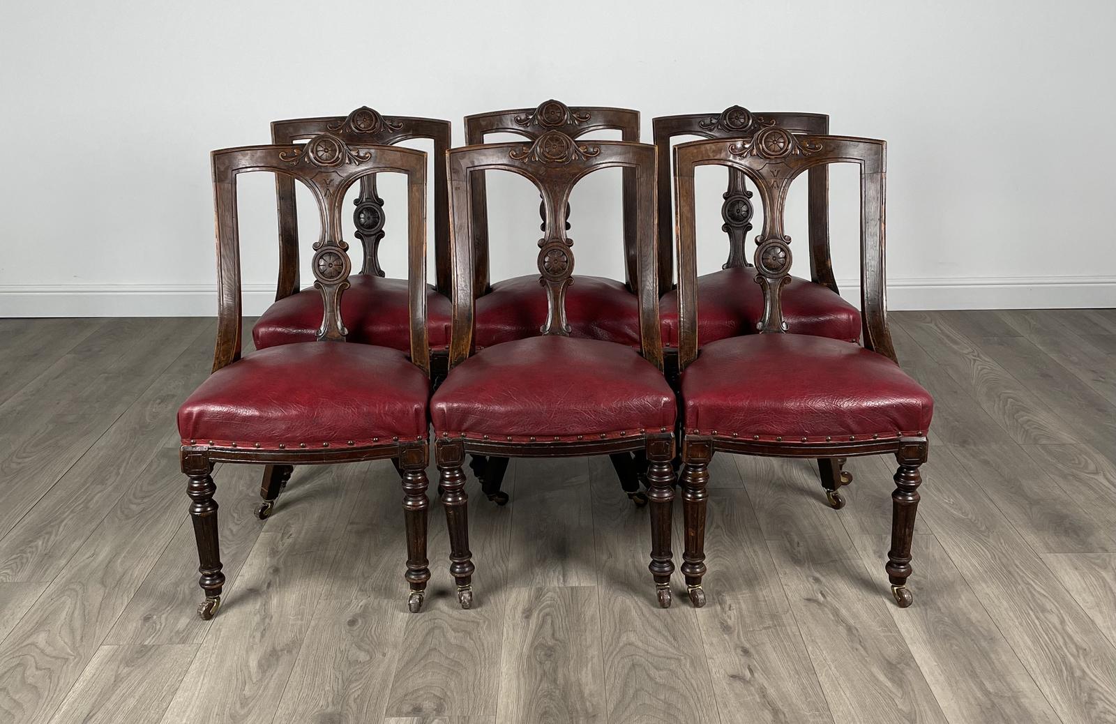 Antique Set Of 6 Edwardian Dining Chairs In Oak (1 of 9)