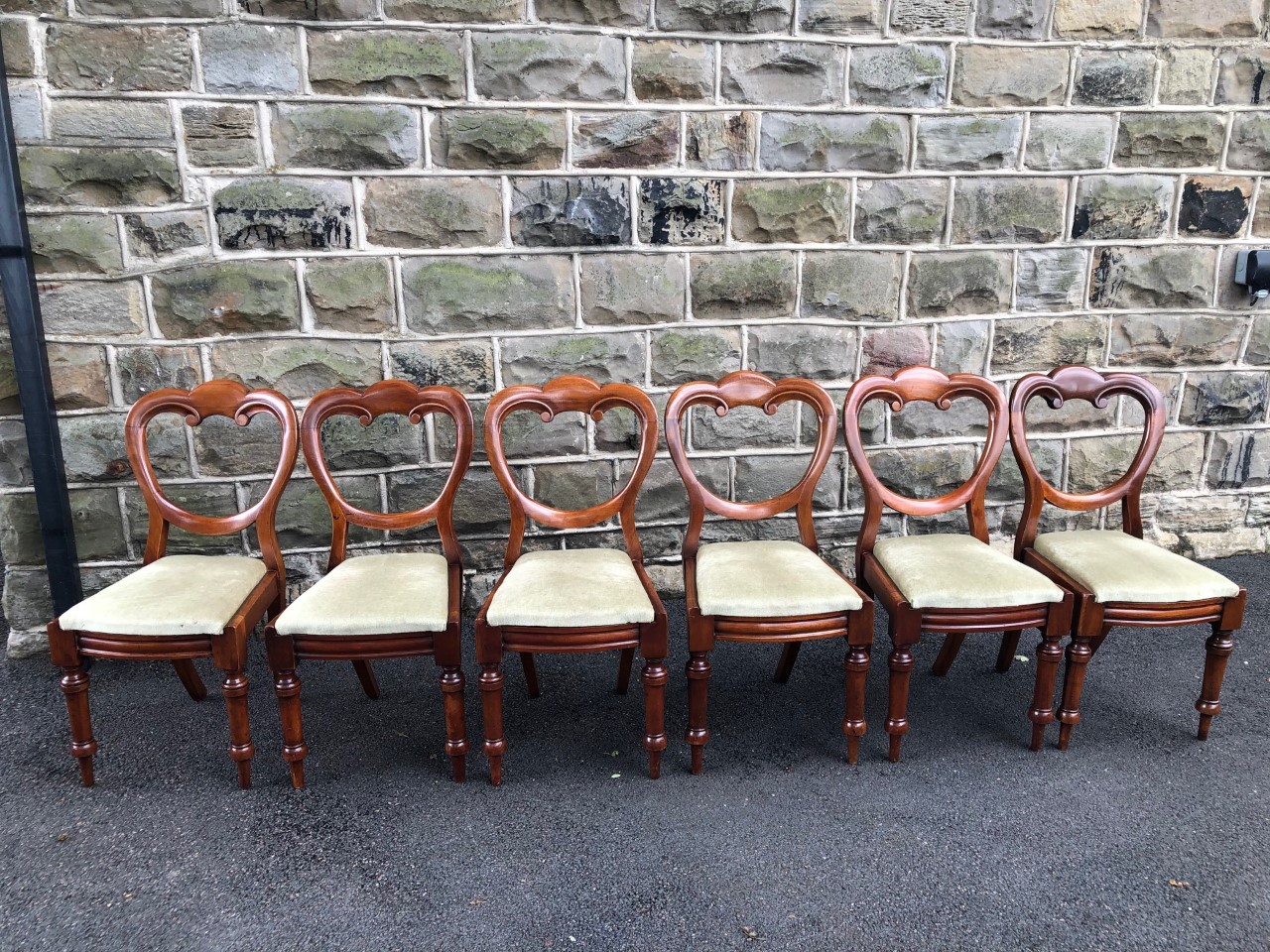 Antique Set of 6 Mahogany Balloon Back Dining Chairs