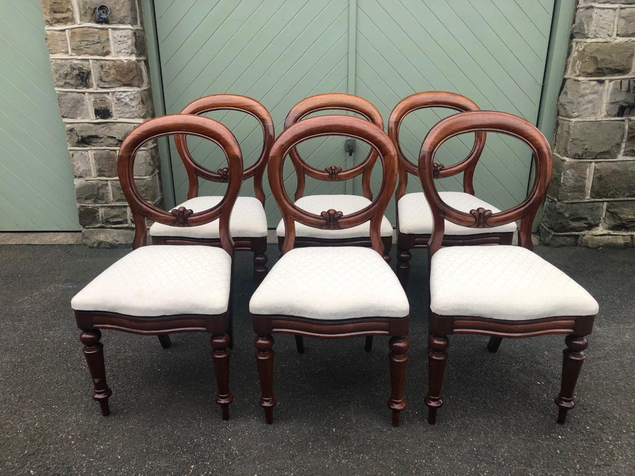 Antique Set of 6 Mahogany Balloon Back Dining Chairs