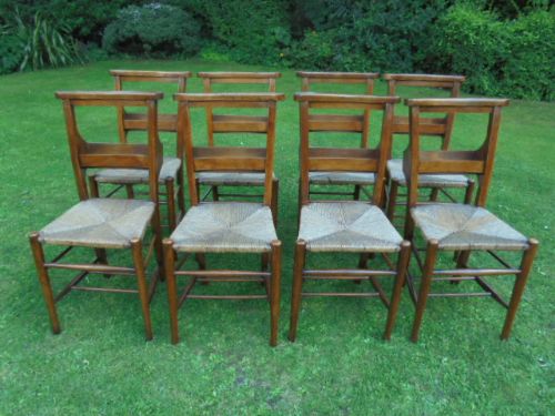 Antique Set of 8 Elm Chapel Chairs / Kitchen Chairs c.1900