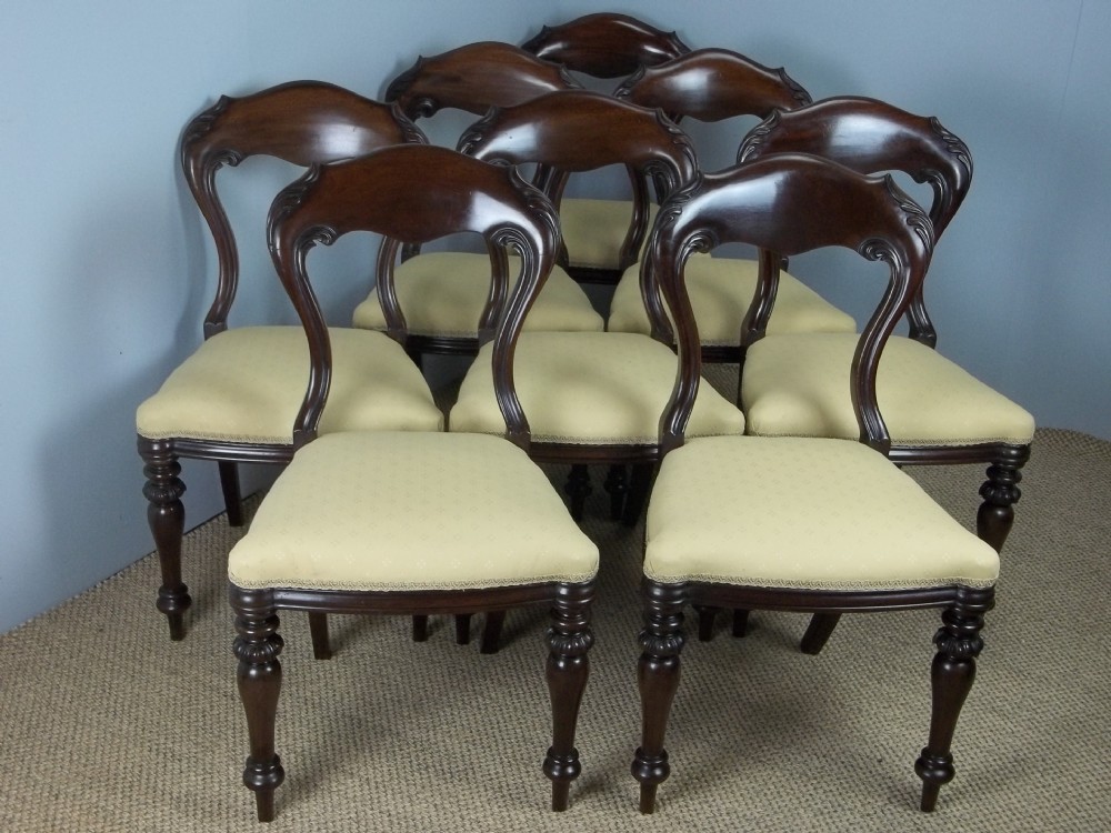 Antique Set of 8 William IV Balloon Spoon Back Stuff Over Mahogany Upholstered Dining Chairs