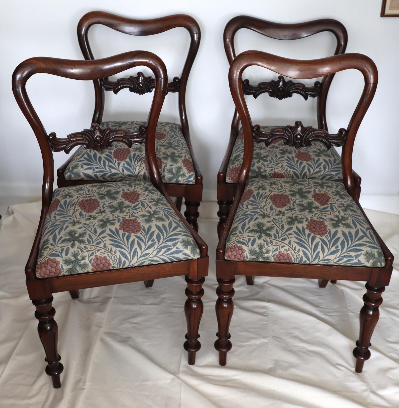 Antique Set of Four Early Victorian Solid Rosewood Dining Chairs