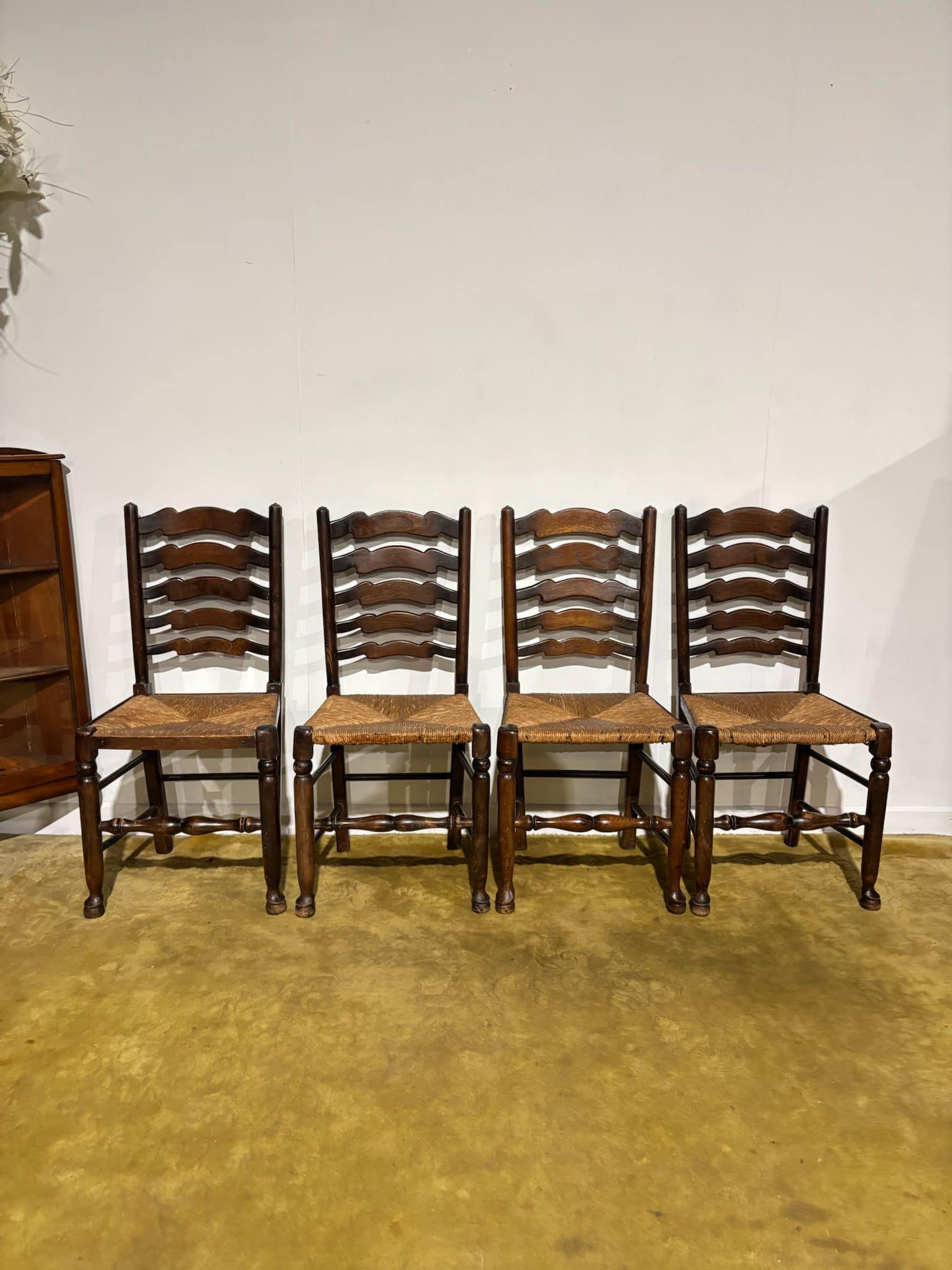 Antique Set of Lancashire Ladderback Chairs Having Rush Seats