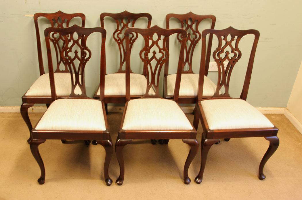 Antique Set of Six Mahogany Chippendale Style Dining Chairs