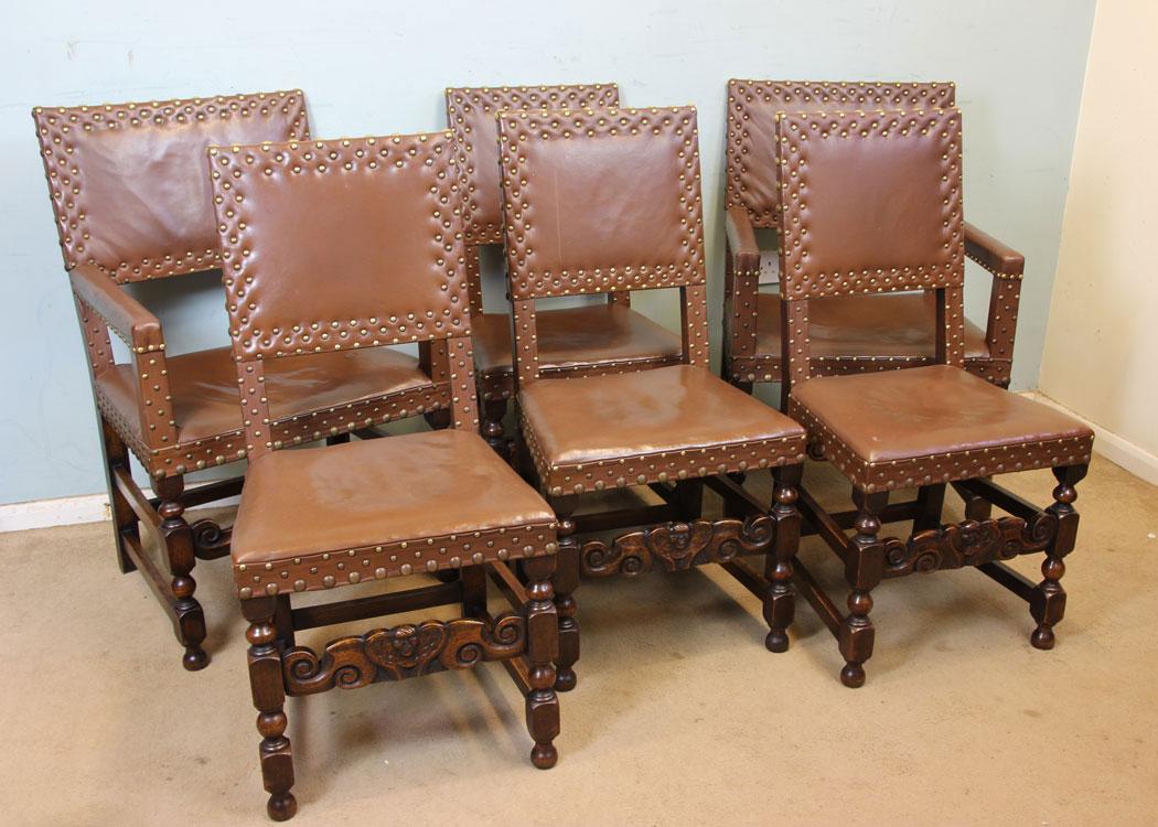 Antique Set of Six Oak Padded Back Dining Chairs