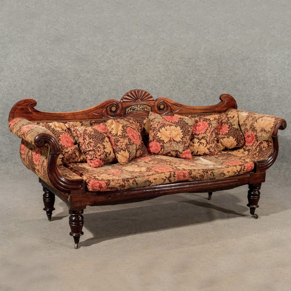 Antique Settee Regency Period Scroll End Sofa Rosewood Brass Inlay English c.1820 (1 of 1)