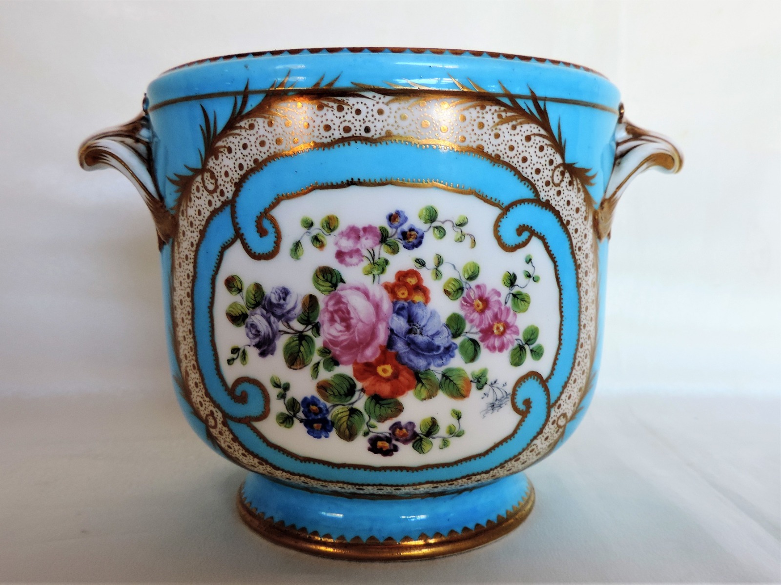 Antique Sevres Cache Pot Celeste Blue Porcelain Hand Painted & Gilded C.1755