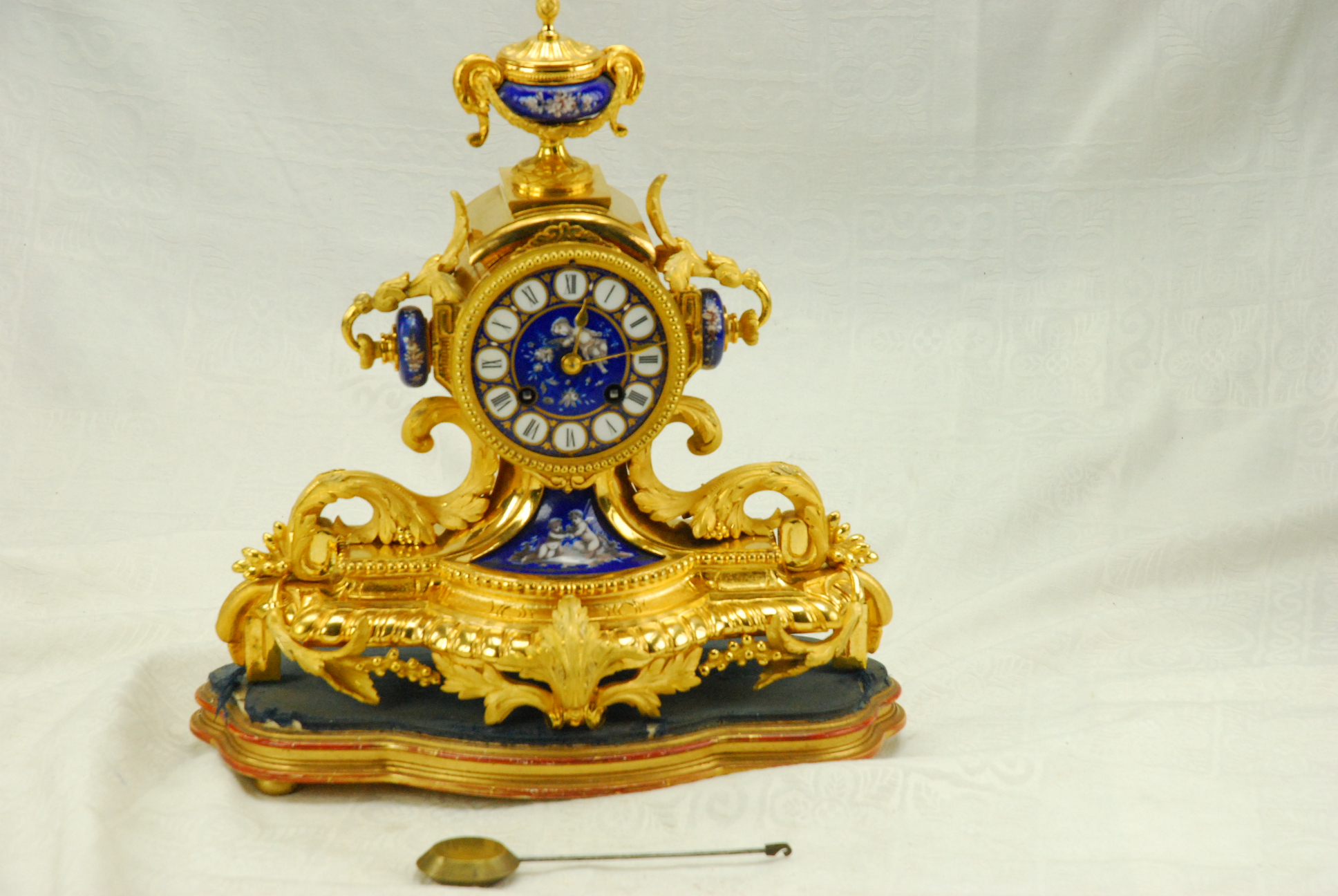 Antique Sevres Porcelain Panel, Ormolu French Mantel Clock c.1880