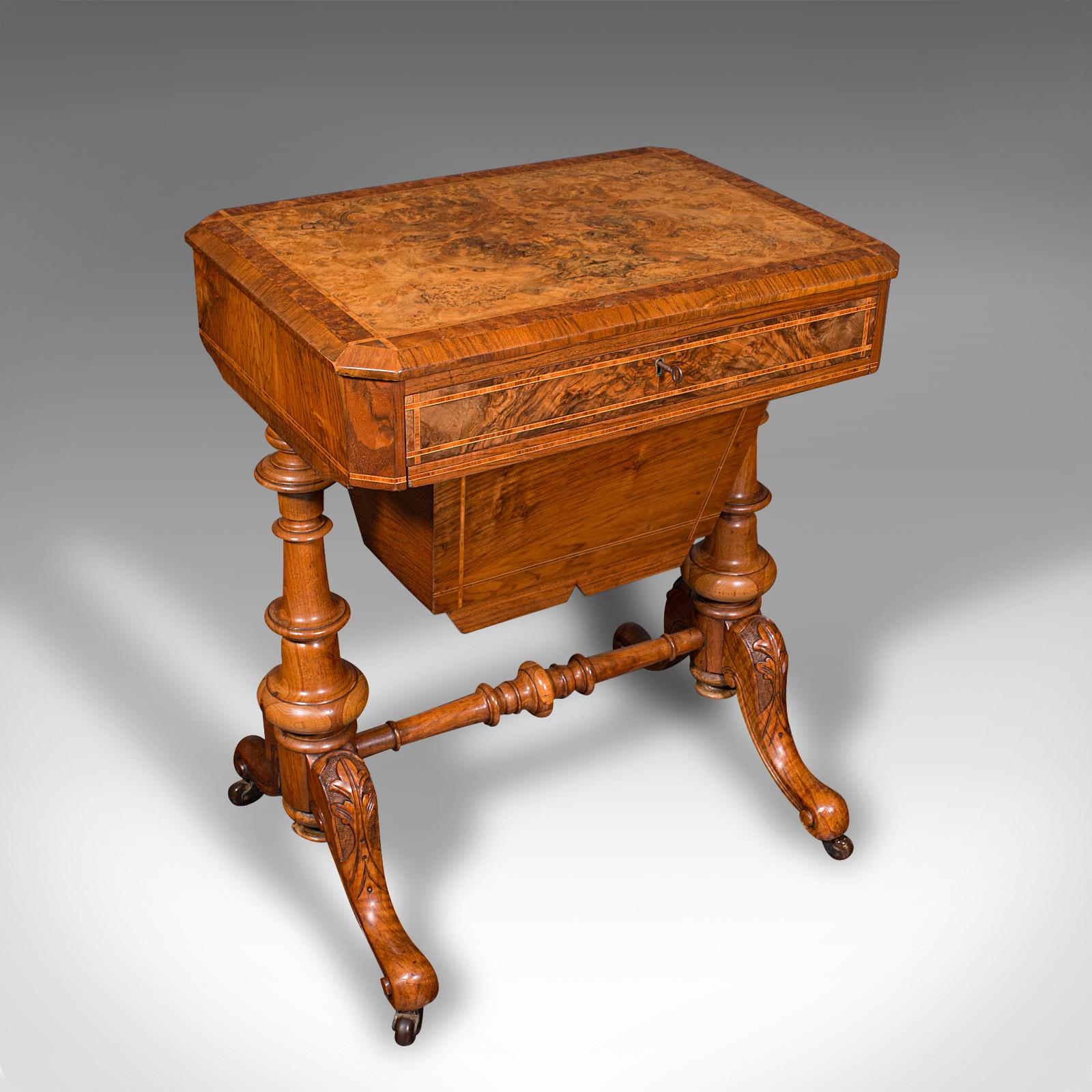 Antique Sewing Table, English, Burr Walnut, Ladies Work Box, Victorian, c.1840